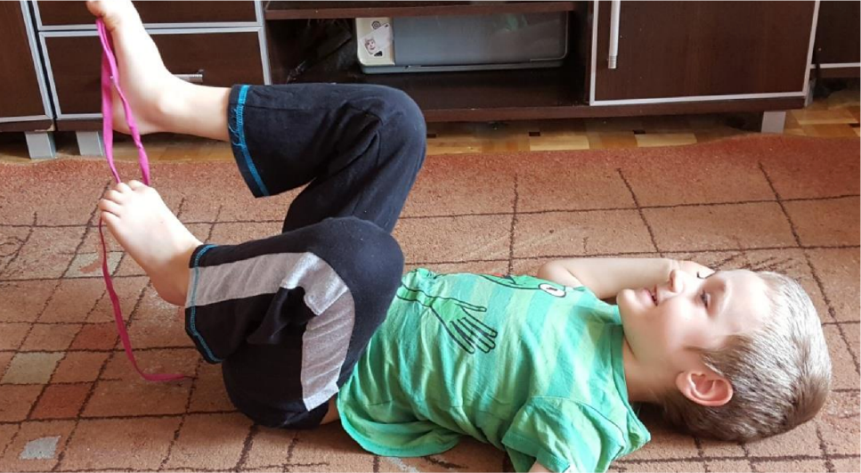 OPIEKUN: Wiesz jak się pedałuje na rowerze? Połóż się na plecach i pokaż. Świetnie!